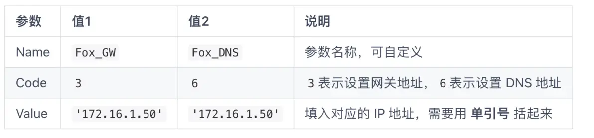 如果需要让该设备使用指定的 DHCP 参数,可以修改 参数: